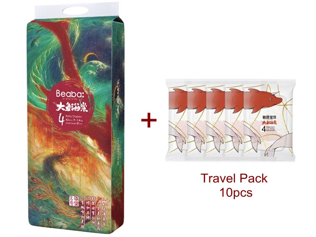 Beaba Nappies Size L 38 Pack + 10pcs Travel Pack (9-14KG) Bigfish Begonia Series (Size 4) 大鱼海棠纸尿裤 -Clearance