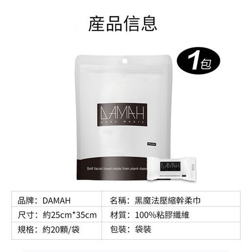 Damah Dark Magic Compressed Disposable Cottony Facial Towels 20 Sheets -1Pack 黑魔法压缩棉巾