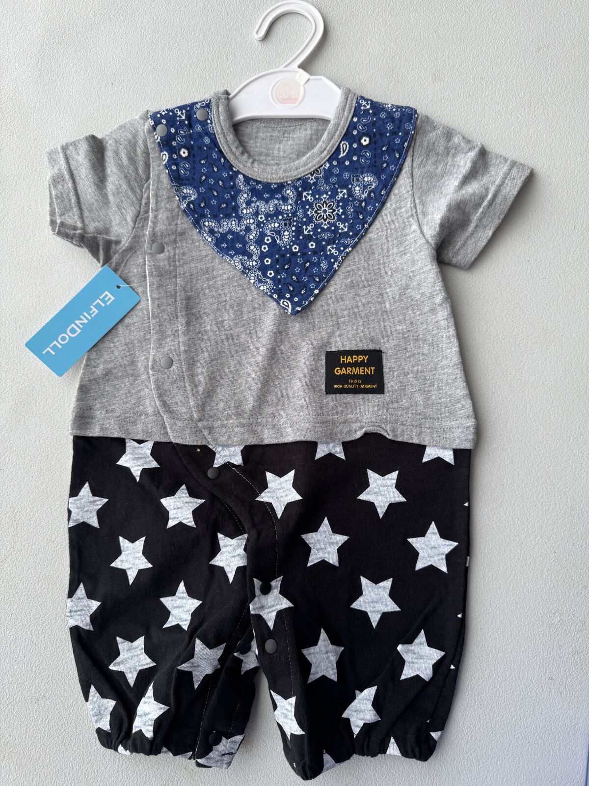 Nishimatsuya Organic Cotton Onesie Coverall Size 70-80cm (Blue Stripe) 有机棉连体衫