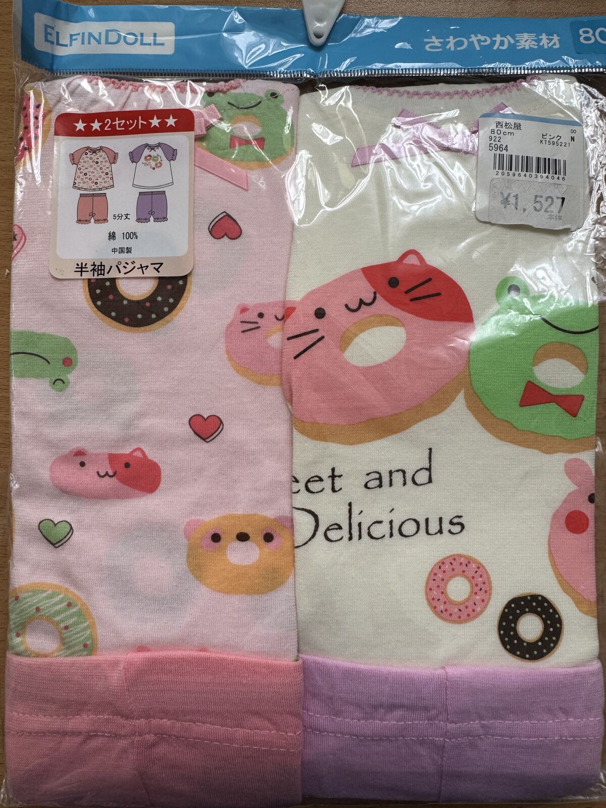 ElfinDoll Baby Girl Pajamas (Top + 3/4 Pants) 1 Set Size 80cm (Cores) 西松屋睡衣套装