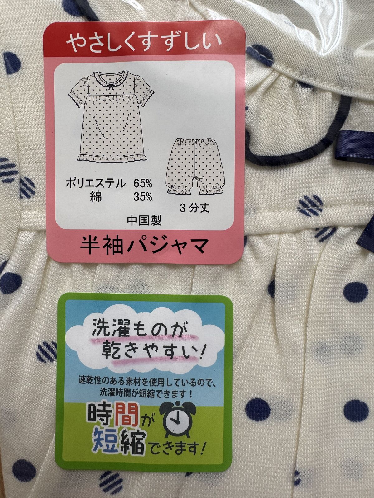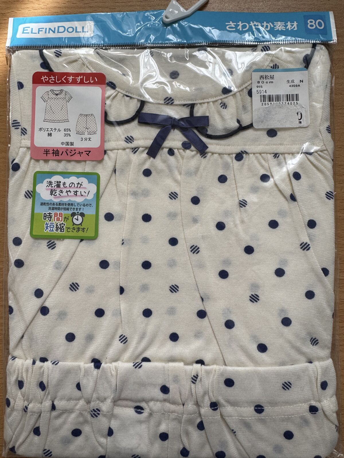 ElfinDoll Baby Girl Pajamas (Top + 3/4 Pants) 1 Set Size 80cm (Dots) 西松屋睡衣套装