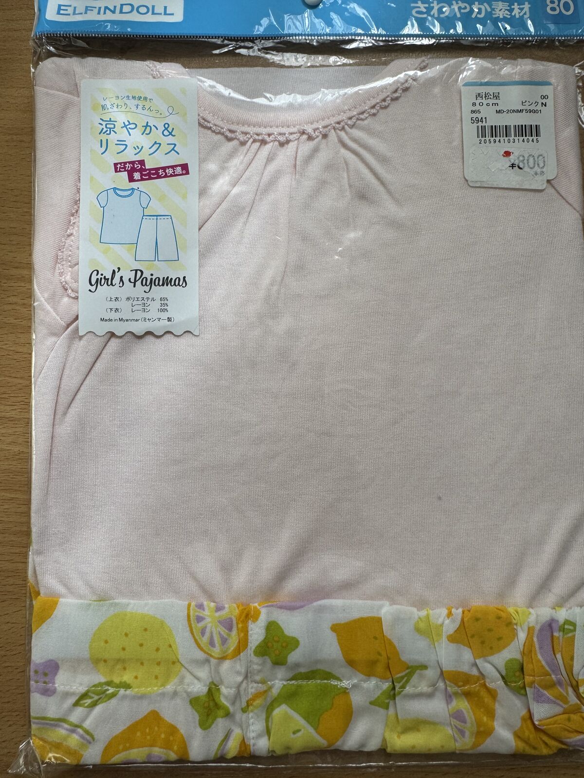 ElfinDoll Baby Girl Pajamas (Top + 3/4 Pants) 1 Set Size 80cm (Cores) 西松屋套装