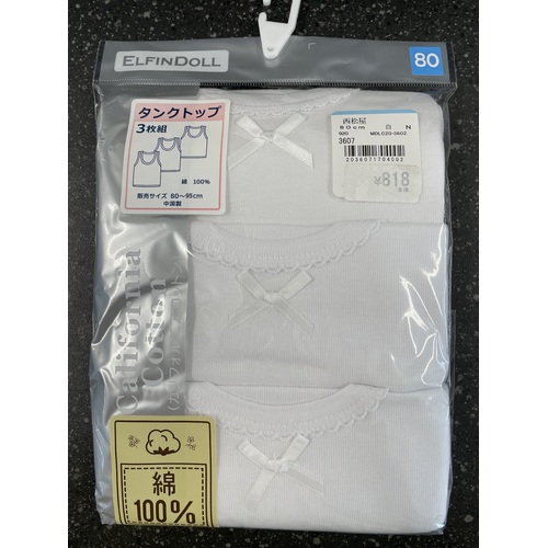 Elfindoll 100% Cotton Girl Vest 3 Pack Size 80-90cm - 西松屋吸水速干背心3件套