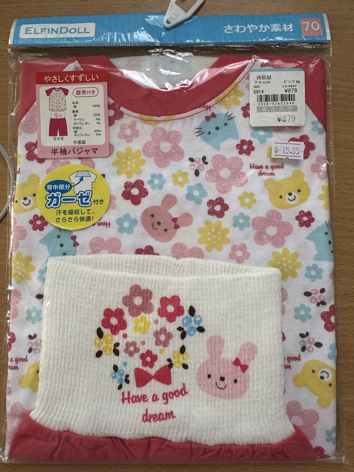 ElfinDoll Baby Girl 100% Cotton Pajamas (Top+Short) 2 Sets Size 80cm (Pendo Pao) 西松屋睡衣两套装