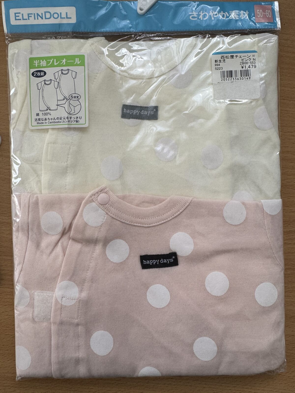 Elfindoll Japan Baby Onesie 2 Pack Size 80cm (Extra Breathability)- 超透气连体内衣