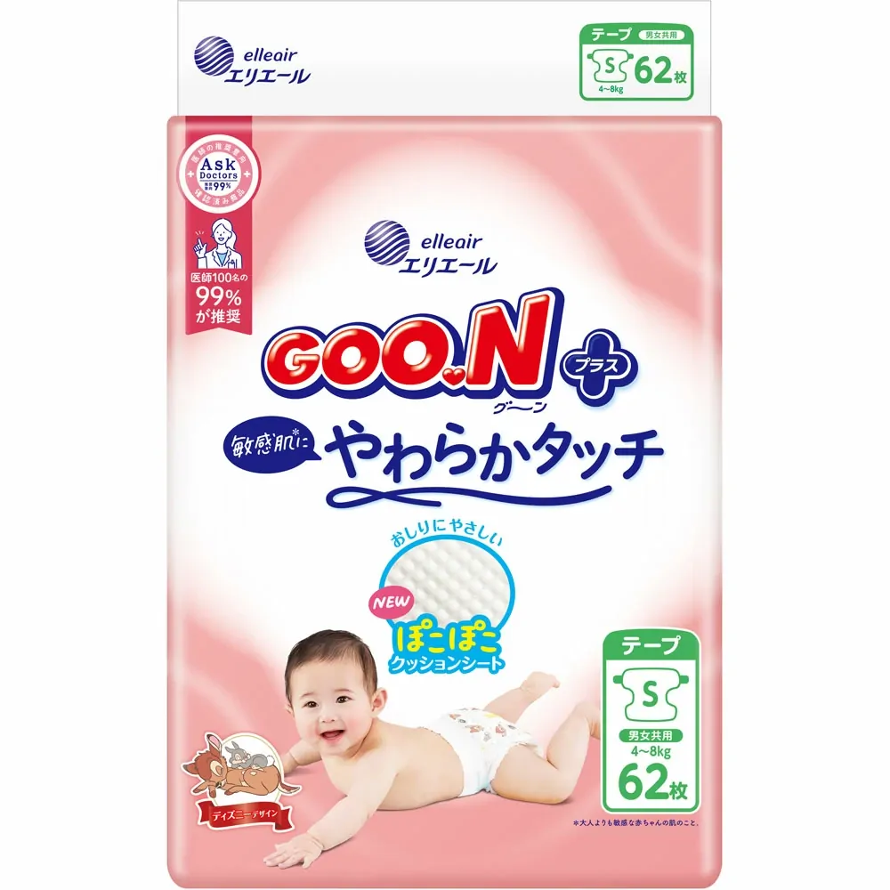 Goo.N Plus Nappies for Sensitive Skin Size S 62 Pack (4-8KG)