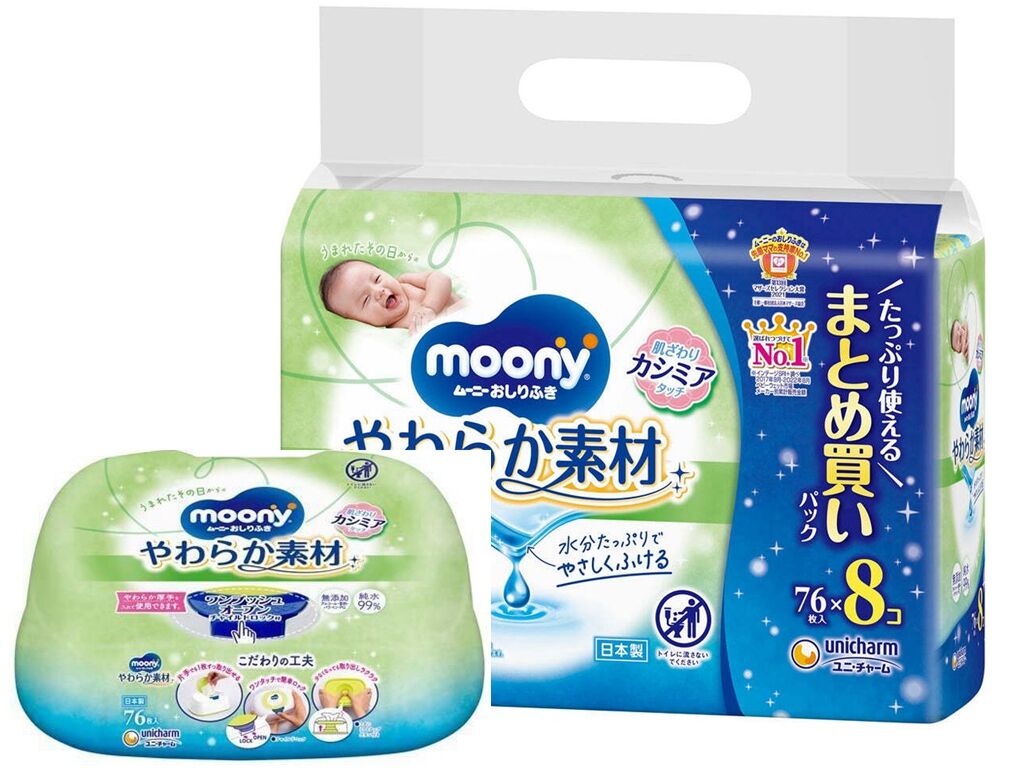 Moony 99% Water Baby Wipes Soft 608pcs (76x8) + Dispenser with 76 Wipes