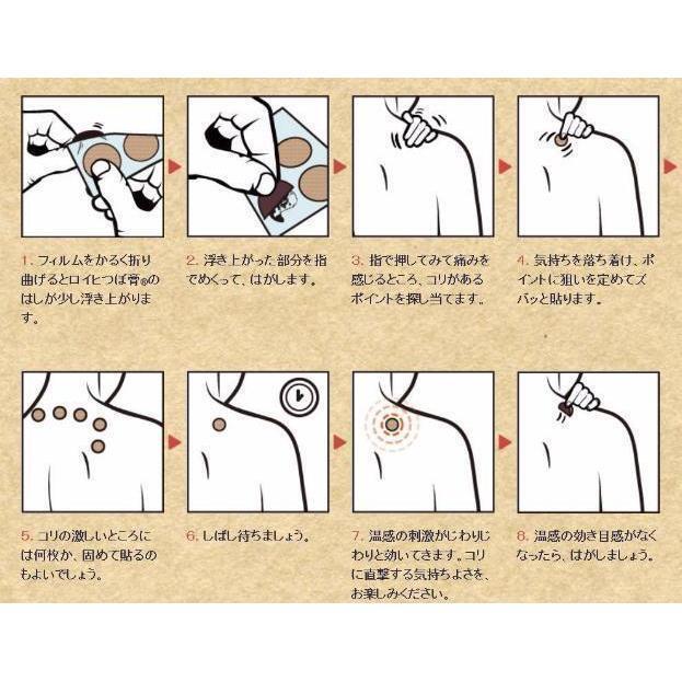 Roihi Tsuboko is a small round-shaped heat-type medical patch (plaster) that provides fast relief for shoulder stiffness and lower back pain.