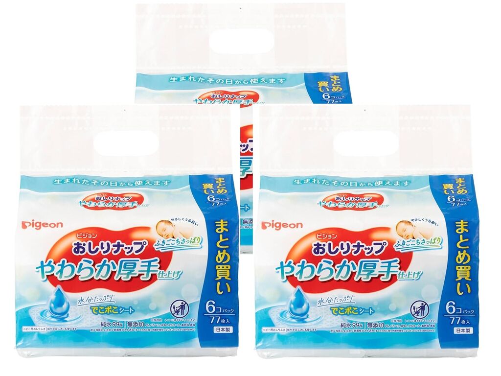 Pigeon Baby Wipes 99% Pure Water Soft & Thick for Sensitive Skin 3Packs (77x6) x 3