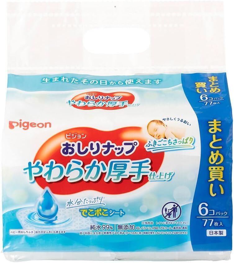 Pigeon Baby Wipes 99% Water Soft & Thick for Sensitive Skin 1Carton 2772pcs (77x6) x 6