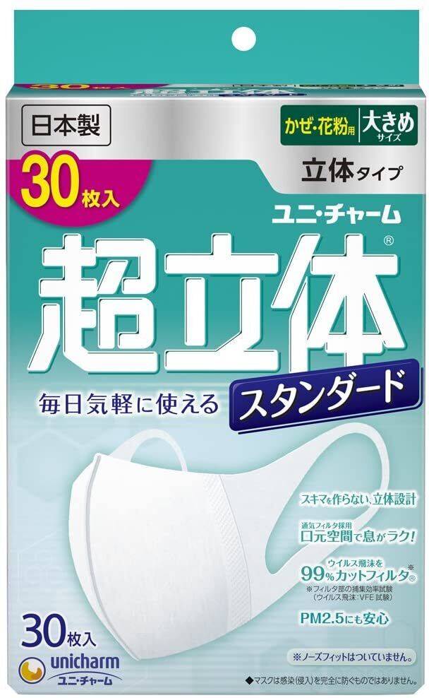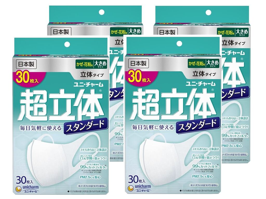 Unicharm Super 3D Face Masks Size L 4Packs (30pcs x 4)