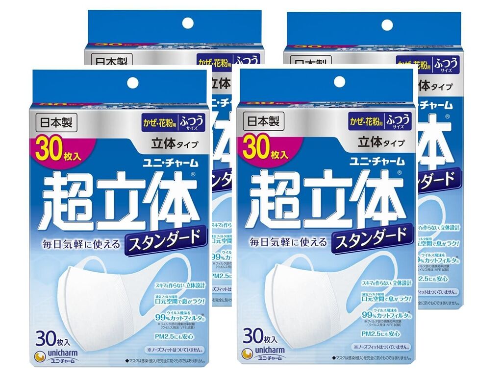 Unicharm Super 3D Face Masks Size M 4Packs (30pcs x 4)