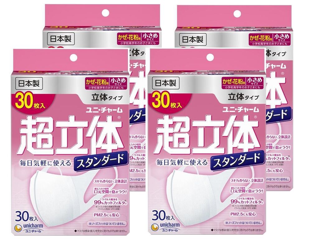 Unicharm Super 3D Face Masks Size S 4Packs (30pcs x 4)